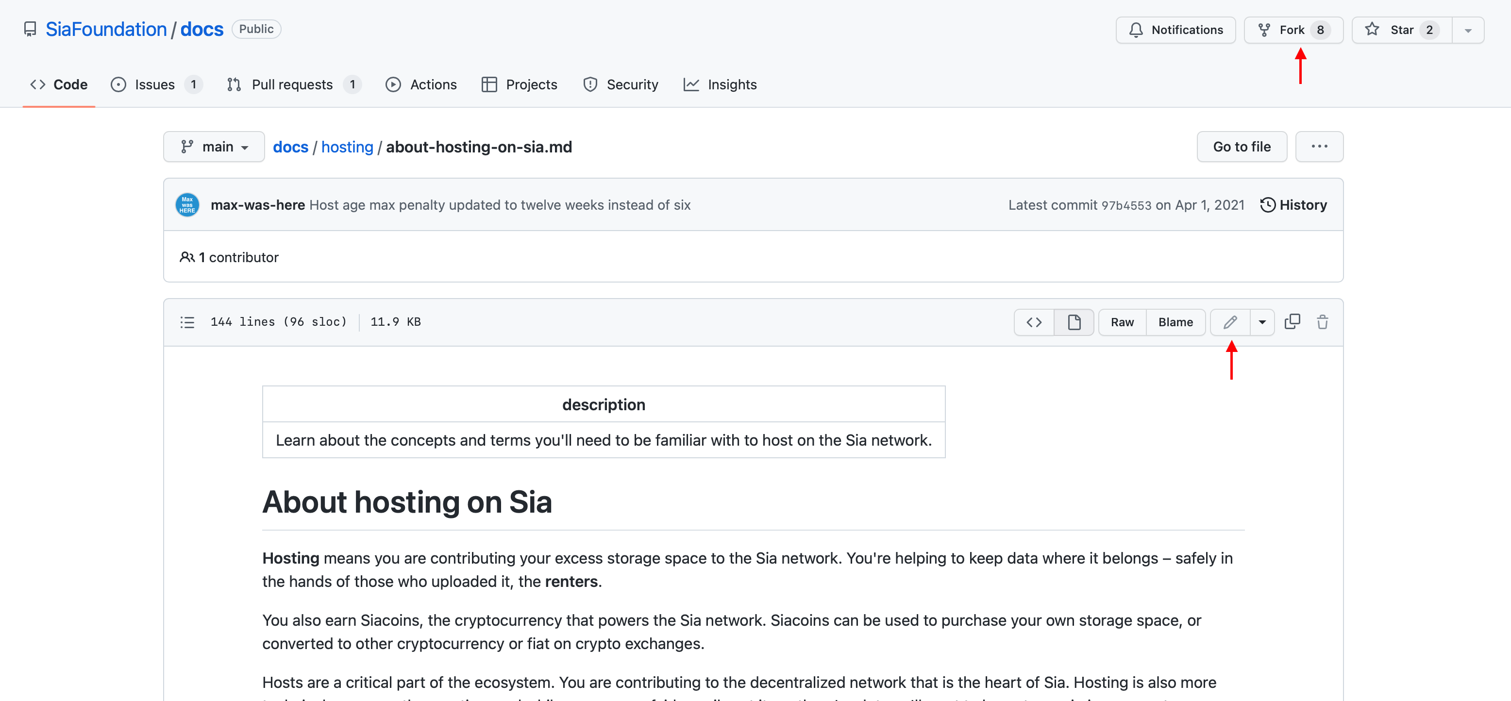 This sends it to us. It won't be live right away – we have to review and approve your edits first. But this gives the community an incredible way to contribute to Sia documentation.