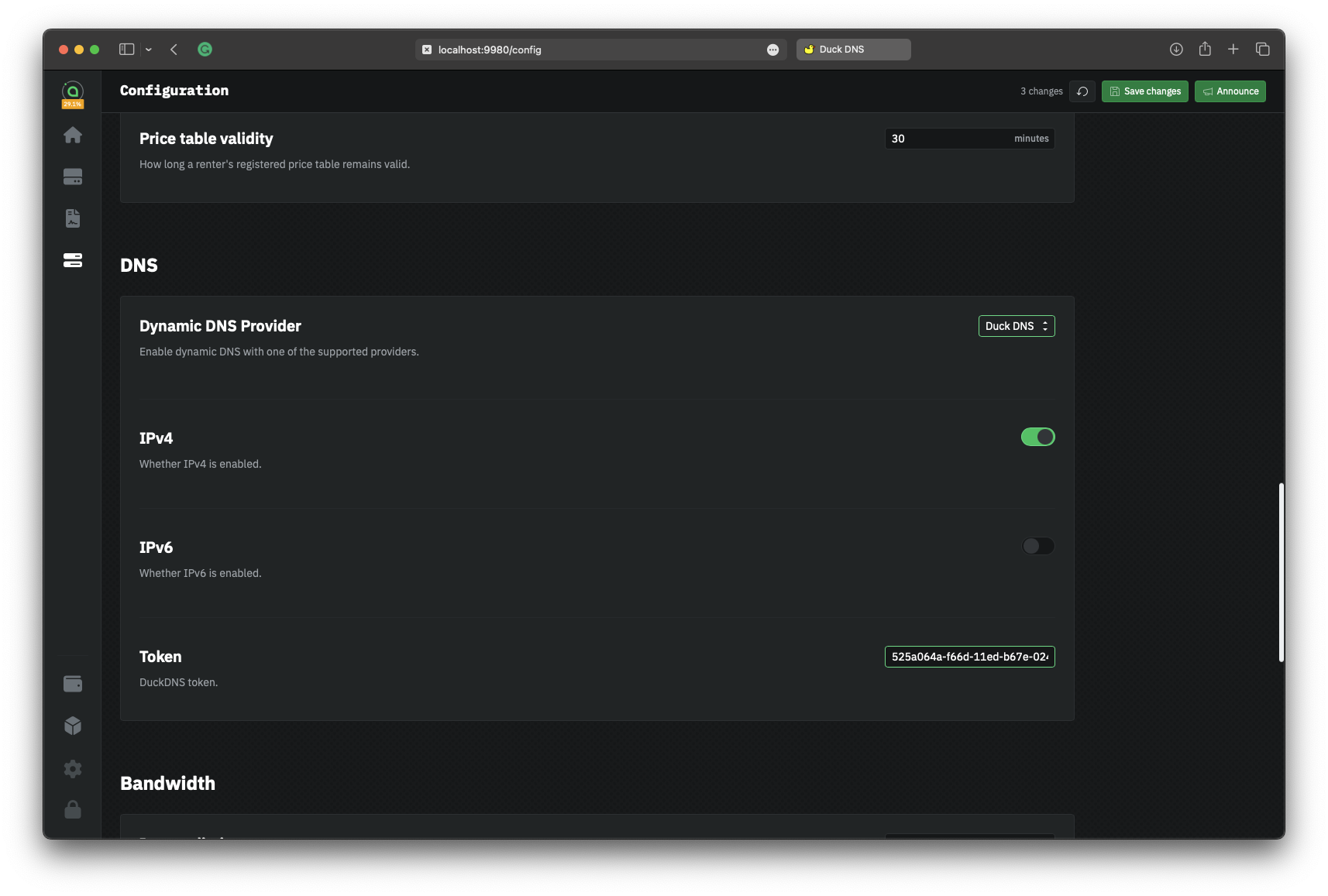 DuckDNS is a free and reliable DDNS provider that offers a straightforward solution for associating a dynamic IP address with a domain name. It's important to note that DuckDNS only supports domains in the format of \`\*.duckdns.org\`. In this guide, we will walk you through the process of configuring DDNS in `hostd` using DuckDNS, enabling you to maintain uninterrupted connectivity to your storage provider, even with a dynamic IP address.