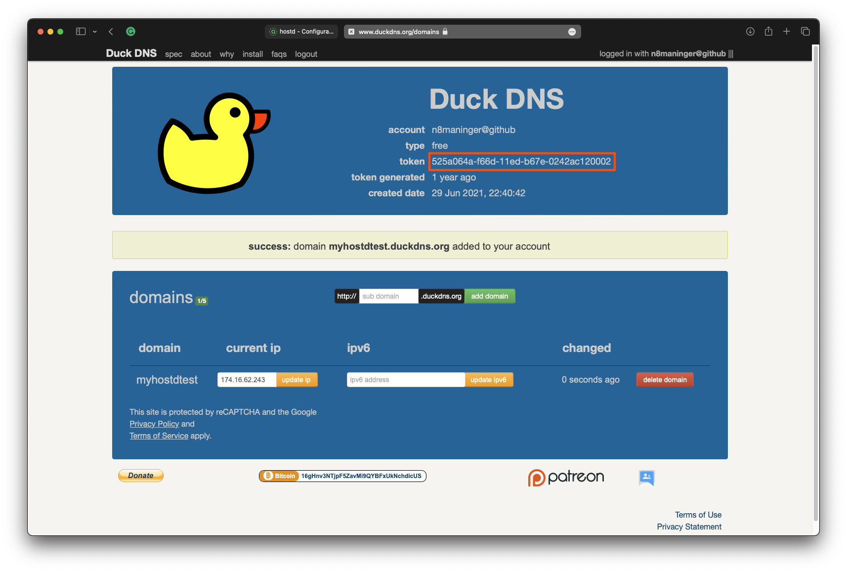`hostd` will now automatically update your DuckDNS domain when your IP address changes.